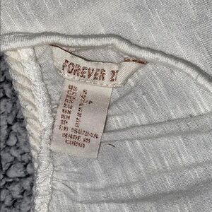 This relaxed camisole from Forever 21 features a chic asymmetrical design in a fresh white and blue color palette. The sleeveless top offers a comfortable fit, perfect for casual outings or layering. Its flowy fabric and unique style make it a versatile addition to any wardrobe.