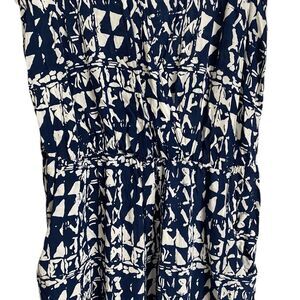 Forever 21 Wide Leg Jumpsuit Women's Sz M Sleeveless Geometric Print Navy White Lightweight Summery Boho