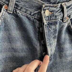 Forever 21 Wmn 28 Blue Medium Wash Distressed Raw Hem Button Fly Jean Shorts