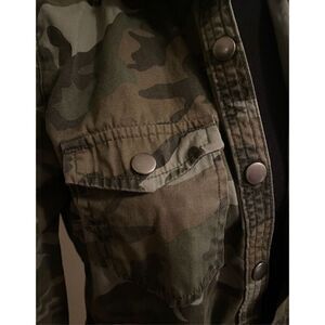 Forever 21 Womans Camo Lightweight Jacket Shirt Size Medium Long Sleeve Front Si