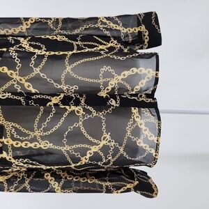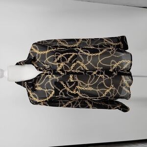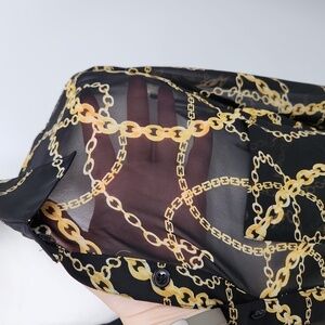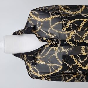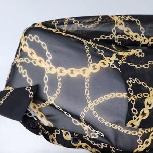 Forever 21 Women Black Gold Chain Print Semi Sheer Button Down Blouse