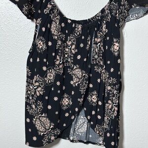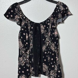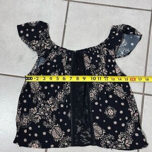 Forever 21 Women Black Top Blouse Open Back Size M. Slightly used. Excellent condition. Smoke free home. Floral top. No issues.