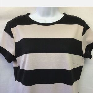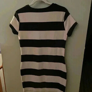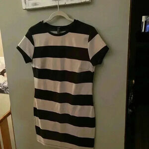 Forever 21 Women Dress Black Tan Wide Stripe SS Bodycon Slim Fit Mini Dress XL