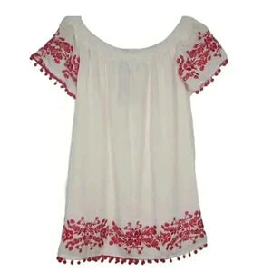 The Exceptional Dress is an easy off-the-shoulder dress with Short Sleeve Bohemian detail at the shoulders. Details: - New With Tag - Pull On closure - Off the Shoulder - Loose Fit