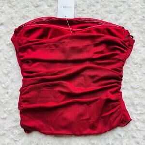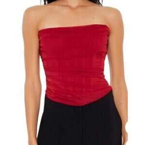 Forever 21 Women Red & Burgundy Ruch Corset Bustier Strapless Tube Top Small NEW