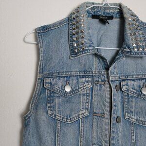 Forever 21 Women Studded Collar Light Wash Denim Vest Size M