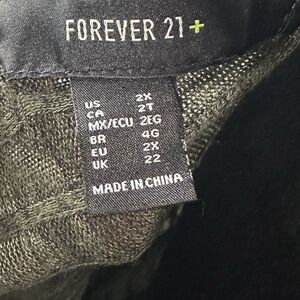 Forever 21+ Women's 2X Olive Green Ribbed 3/4 Sleeve Open Back Criss Cross Shirt