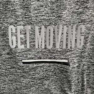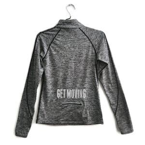 Forever 21 Women's Activewear Thumb Hole Quarter Zip Gray Pullover - Get Moving printed on back, with convenient zippered pocket
