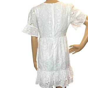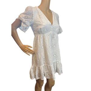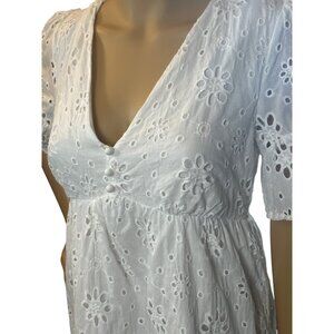 Forever 21 Womens Babydoll Eyelet Mini Dress Small White Milkmaid Fairycore Cott