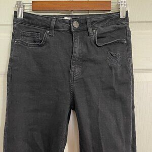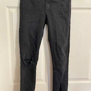 Forever 21 Womens Black Distressed Raw Chewed Hem High Rise Skinny Jeans Size 25