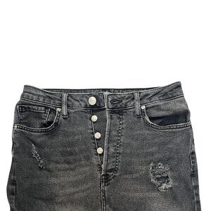 Step up your denim collection with these Forever 21 women’s distressed skinny jeans size 30 - US size 8/10. Crafted in a washed black / charcoal gray finish, these jeans feature a high rise waist, classic 5-pocket styling, and a slim skinny leg fit. The ripped, distressed details add the perfect touch of edgy streetwear style that’s easy to dress up or down.