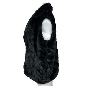 Forever 21 Black Acrylic Polyester Fuzzy Soft Faux Fur Sleeveless Pocket Lapel Collar Casual Travel Party Cocktail Winter Vest Jacket Size S
