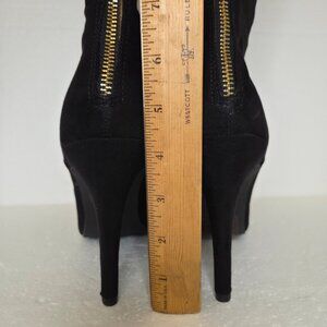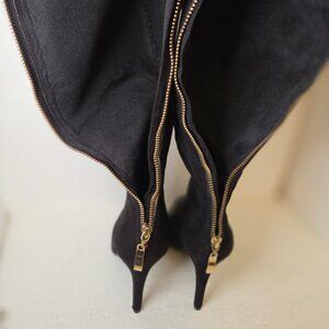 Forever 21 Women’s Black Faux Suede Knee High Stiletto Heel Gold Zip Boots - 9