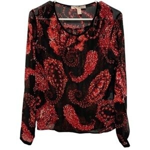This blouse is so effortlessly pretty! It’s completely sheer and features a fun red and light pink paisley print and roses. This is from the Forever 12 contemporary collection. GUC