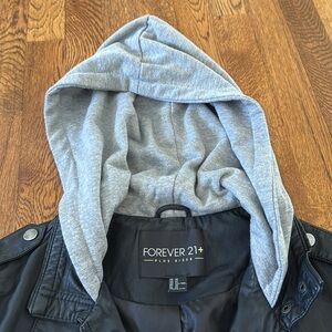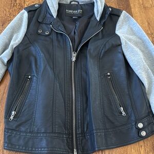 Forever 21 Women’s Black and Gray Hooded Jacket Size 2X