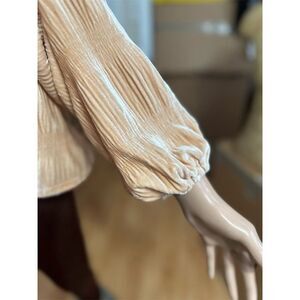 Forever 21 Womens Blouse XL Beige Belvet Button-Up Collared Long Sleeve