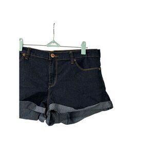 Forever 21 Womens Blue Denim Booty Shorts Cuffed Mid Rise Dark Wash Size 30