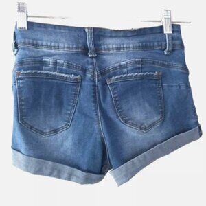 Forever 21 Women’s Blue Jean Shorts Size 5 Cuffed Stretch Pockets EUC Shading