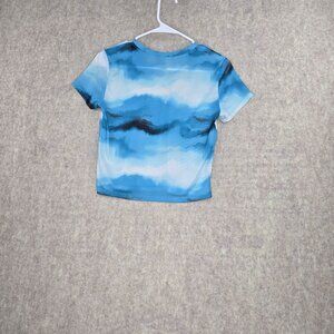 Forever 21 Womens Blue Tie-Dye Short Sleeve Cropped Mesh Tee Shirt Size Medium