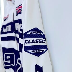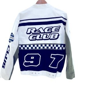 Forever 21 Women’s Bomber White Jacket Patches Sports Car Racer Size Medium