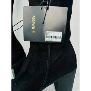 Forever 21 Womens Boots Sz 10 Over Knee Black Faux Suede 4 inch Chunky Heel NWT