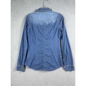 Forever 21 Women's Denim Pearl Button-Up Shirt Size S.