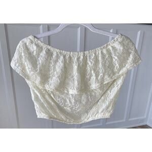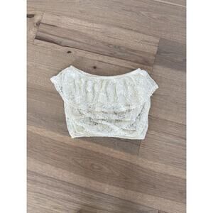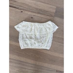 Forever 21 Womens Cream Lace Ruffle Tube Crop Top Size Medium