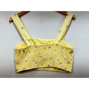 Forever 21 Women's Crop Top Size M Yellow Floral Embroidered Casual Summer Smock