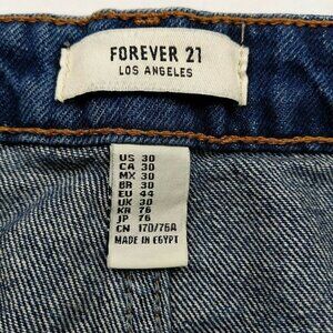 Forever 21 Womens Denim Booty Shorts Size 30 Solid Blue Pockets Frayed Hem