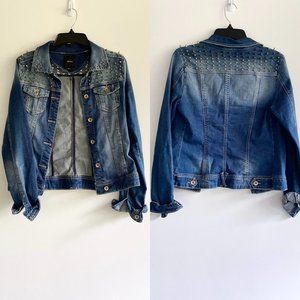 Forever 21 Women's Denim Gold Studded Jean Jacket
