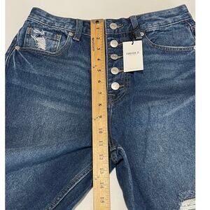 Forever 21 Womens Destroyed Knees Denim Dark Wash Mom Jeans Size 27 New