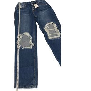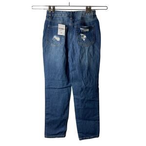 Forever 21 Womens Destroyed Knees Denim Dark Wash Mom Jeans Size 27 New