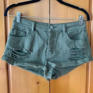 Forever 21 Women's Distressed Rolled Up Denim Shorts - Green, Size 26