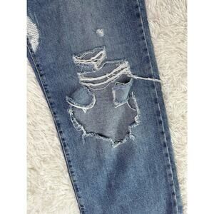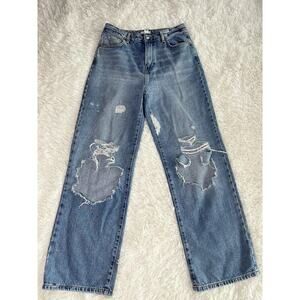 Forever 21 Womens Distressed Stretchy Wide-Legged Medium Wash High Rise Jeans 28