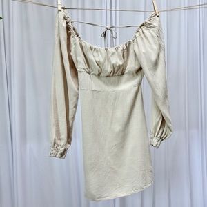 Forever 21 Women's Dress Linen Long Sleeve Open Back Tan Size S