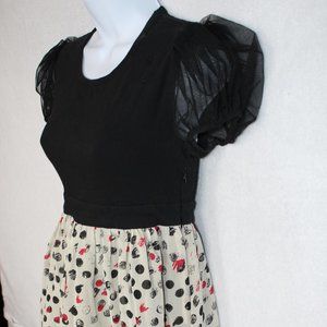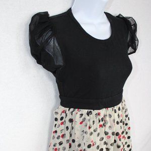 Forever 21 Women's Dress Polka Dot Short Sleeve Puffy Black Beige Red Small