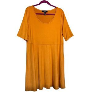 Forever 21+ Womens Dress Scoop Neck A-Line Midi 3X Mustard Fall Thanksgiving USA