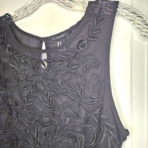 Forever 21 Women's Elegant Black Embroidered Sheer Sleeveless Camisole Top M