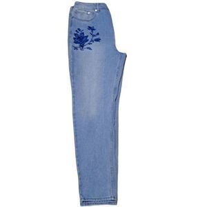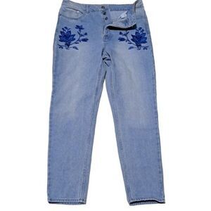 Forever 21 Women's Embroidered Mom Fit High Rise Button Fly Light Wash Denim 30