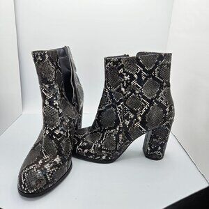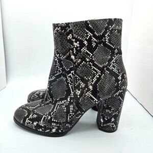Forever 21 Womens Faux Snakeskin Block Heel Ankle Boots Size 9 With Side Zipper