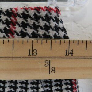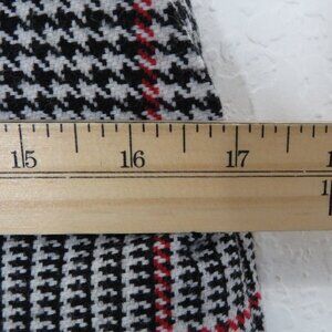 Pre-Owned Condition! Shell: 47% Polyester/30% Wool/20% Acrylic/3% Nylon. Lining: 100% Polyester. Beautiful Front Pockets Red, Black & White Houndstooth Design Skort.