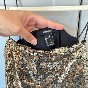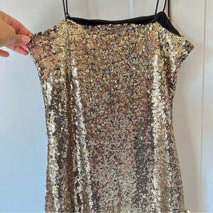 Forever 21 Women's Gold Sequin Mini Dress Size Small Spaghetti Straps New Year’s