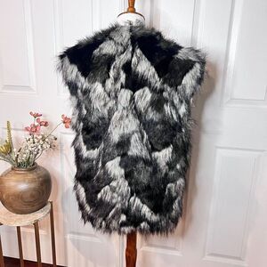 Forever 21 Womens Gray Faux Fur Wolf Oversized Vest Sz S Mob Wife Rocker Glam