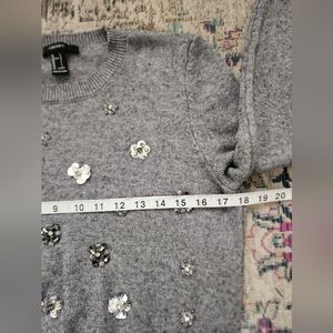 Forever 21, Women's Gray & Silver Sequin Long Sleeve Pullover Sweater, sz LG