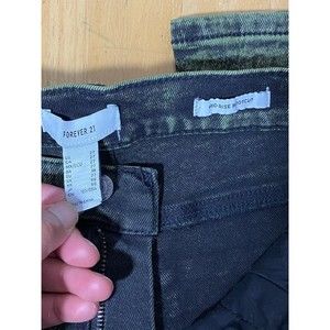 This pair of blue jeans from Forever 21 is a stylish addition to any wardrobe. The green acid wash gives it a unique look, while the skinny and slim silhouette flatters the figure. It features a button closure and is made of high-quality denim fabric that is both durable and comfortable to wear. The size is 27 and the jeans are designed for regular use.
