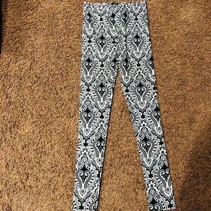 Forever 21 Women’s High Rise Stretch Long Leggings Pants Print Black White Small