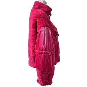 Forever 21 Womens Hot Pink Sherpa Jacket JuniorSize L With Faux Leather Sleeves