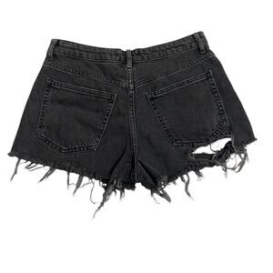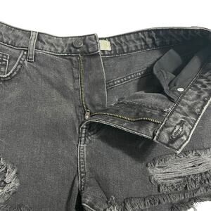 Forever 21 Womens Jean Shorts Size 28 Black Distressed Ripped Mid Rise Denim