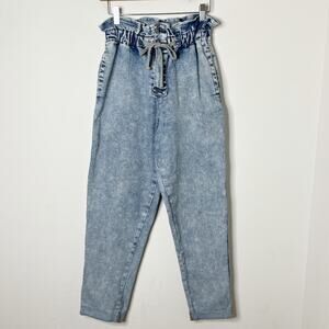Forever 21 Women's Jeans S Acid Wash Drawstring Paperbag Waist High Rise Cuffed