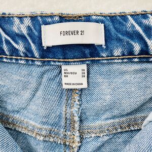 In great preowned condition. Actual item for sale photographed, please see photos for details and measurements. Forever 21 Womens Jeans Size 28 Blue Light Wash Distressed Ripped Metal Accents.